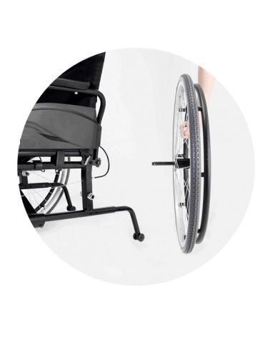 Reduzca el peso y el tamaño de la silla de ruedas con las ruedas traseras de desmontaje rápido. No se necesitan herramientas. Las ruedas son fáciles de quitar para su almacenamiento y transporte.